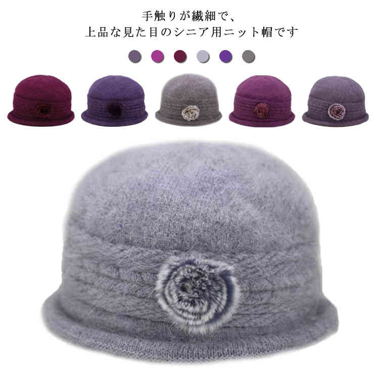 ニット帽 レディース お花モチーフ 帽