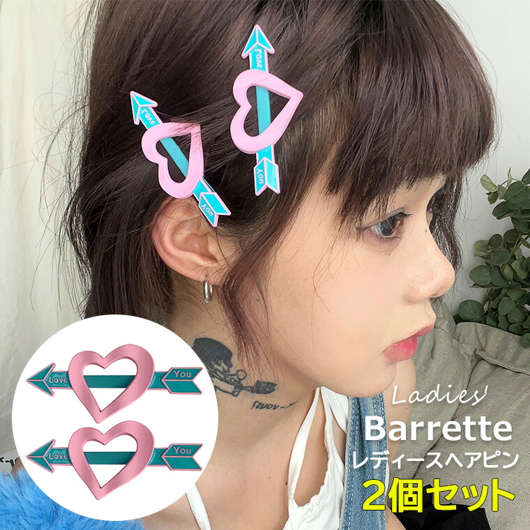 ハートに矢が刺さった可愛いらしいデザインのヘアピン2個セット♪ レディース レヘアクリップ 2個セット ヘアピン ヘアアクセサリー アクセサリー ヘアアクセ アクセ