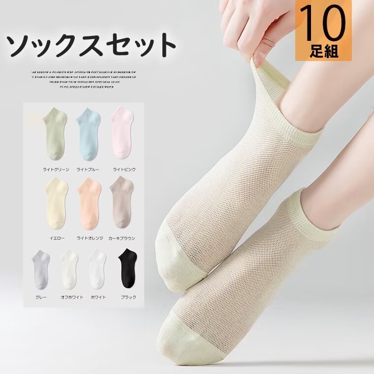 春夏の明るい日差しに映えるパステルカラーでおしゃれに 10足組 10足セット 靴下 レディースソックス メッシュソックス 通気 スニーカーソックス ショートソックス 春 夏 無地 おしゃれ かわいい