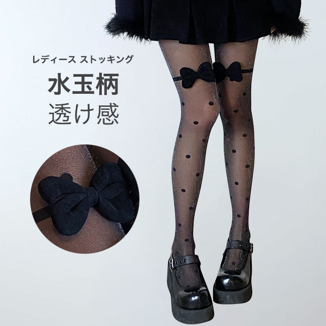 ストッキング レディース 女の子 水玉柄 透け感 着 せ 薄手 レイヤード 伸縮性 着脱しやすい 動きやすい トレンド感 きれい ストレッチ性 ウエストゴム コーディネート フィット感 通気性 美尻