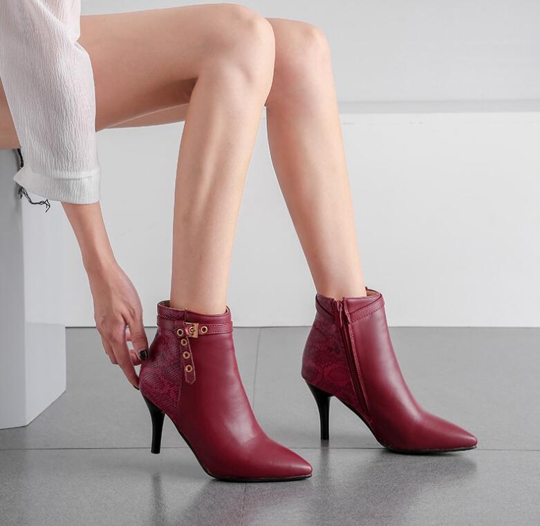 レディースブーツショートブーツ ブーティーピンヒール ポインテッドトゥブーティー冬靴春秋美脚効果 バックファスナー付