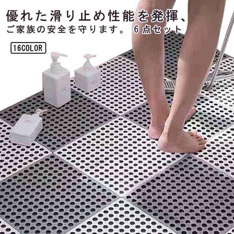 お風呂マット 滑り止めマット バスマット 浴室 キッチンマット DIY 洗い場マット 赤ちゃん お年寄り 転倒防止 防カビ 6点セット グレー 白 青 ピンク グリーン 30x30cm