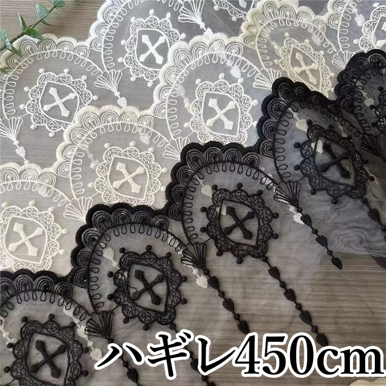 ハンドメイドやリメイクに スカラップレース ハギレ450cm 18cm幅 十字架 クロス 薄地生地 レース生地 刺繍 生地 布 片スカラップレース 裁縫 手作り 生地 量り売り はかり売り レース生地