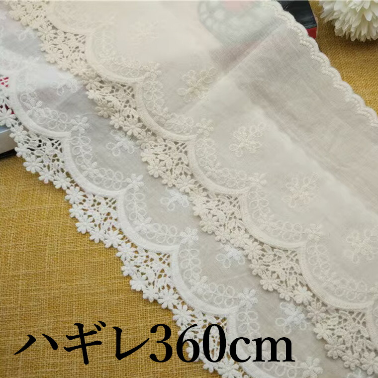 ハンドメイドやリメイクに スカラップレース ハギレ360cm 14cm幅 小花 花柄 薄地生地 レース生地 刺繍 生地 布 片スカラップレース 裁縫 手作り 生地 量り売り はかり売り レース生地 刺