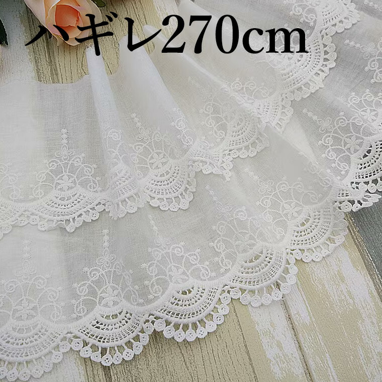 ハンドメイドやリメイクに スカラップレース ハギレ270cm 28cm幅 薄地生地 レース生地 刺繍 生地 布 片スカラップレース 裁縫 手作り 生地 量り売り はかり売り レース生地 刺繍 生地 布