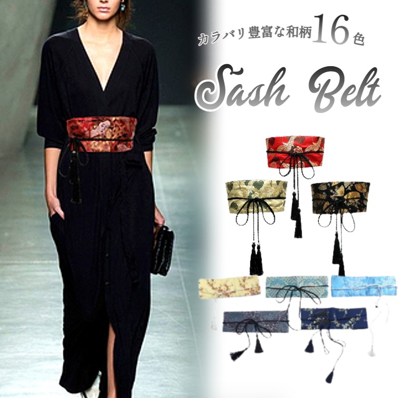 カラバリ豊富でおしゃれな和柄ベルト サッシュベルト 着物帯風ベルト 帯 レディース ベルト 帯締め風の飾り紐 和装 和服 雅 和テイスト かわいい おしゃれ SNS映え レトロ 写真撮影 学園祭 文化