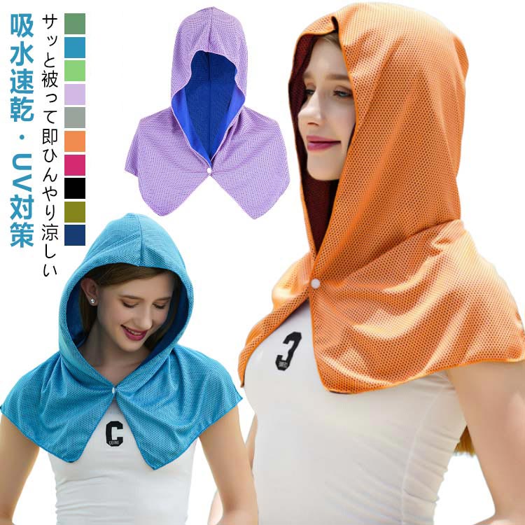 冷感ポンチョの、フード部分をコンパクトに使いやすくアレンジしたような商品です。