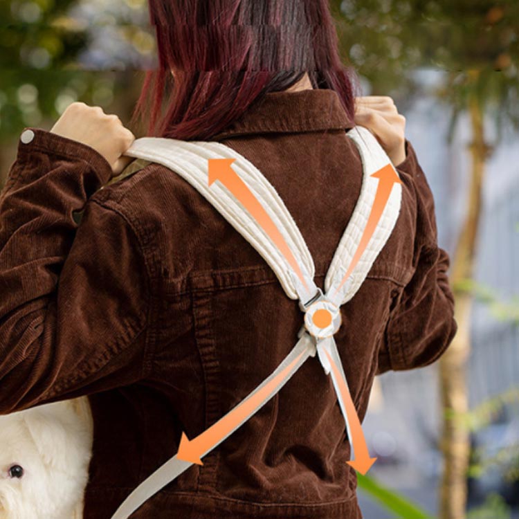 肩ひもの長さは使用者の体型や身長に合わせて調節することができます。肩掛け部分の幅は広めのデザインなので。愛犬を入れたときに重さを感じにくく、安定感がある作りとなっています。