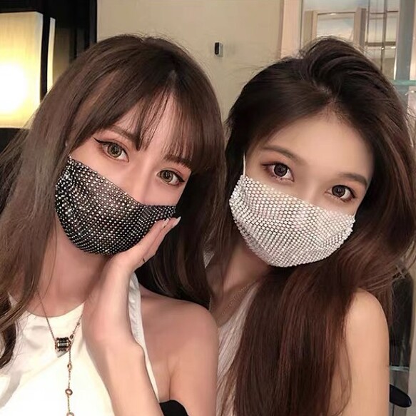 動くたびにライトに反射して、マスク姿をきれいにドレスアップ・