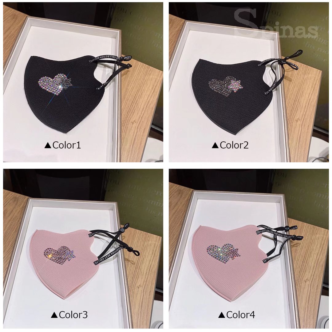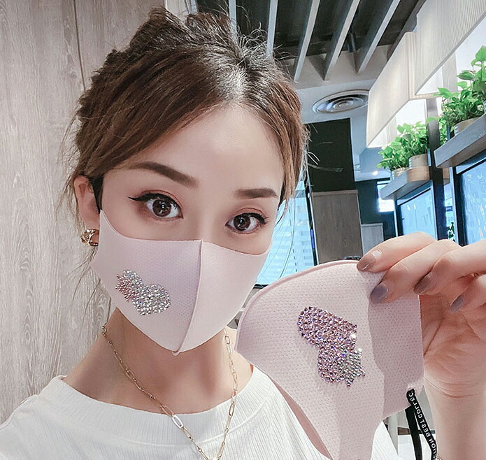 洗って繰り返して使える 布マスク ラインストーン きらきら オシャレ マスク ファッションマスク ハート 耳調節可能 ロゴ 華やか