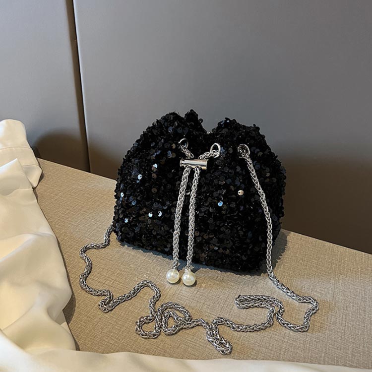 小さめ 巾着バッグ シルバー スパンコール 巾着 トートバッグ ショルダーバッグ チェーンストラップ 春 夏 バッグ