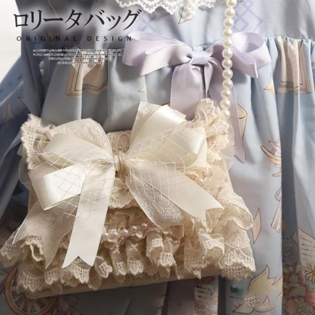 クラシカルな雰囲気を漂わせる レース ロリータバッグ パール チェーンショルダー 斜めがけ ミニバッグ 肩掛け リボン コスプレバッグ パーティーバッグ カバン かばん 鞄