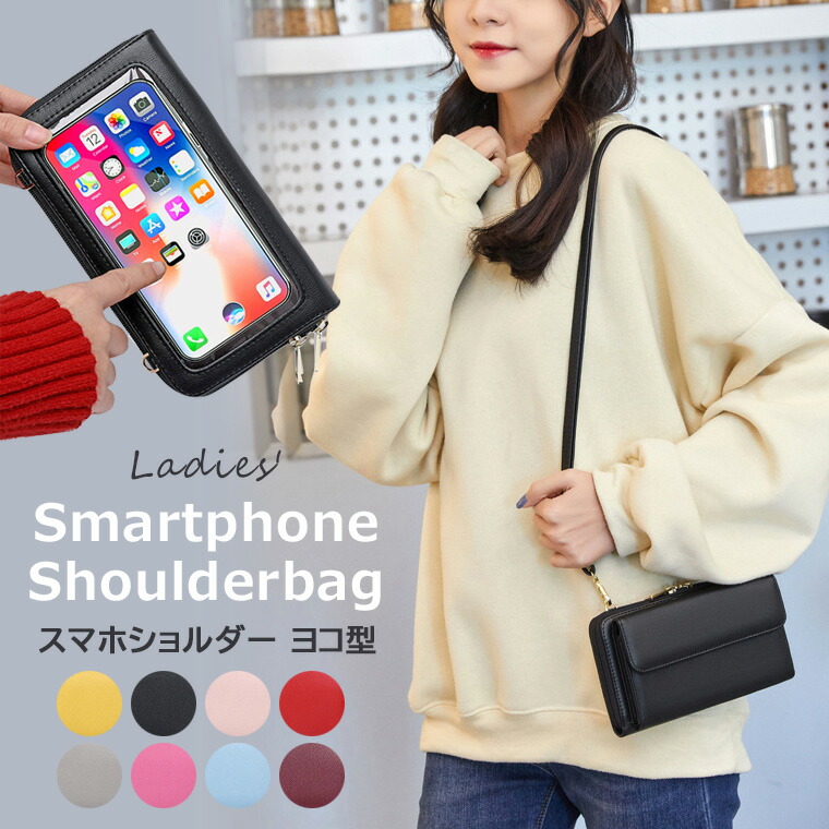 スマホを入れたまま見れる&タッチできるスマホショルダー♪ スマホショルダー ヨコ型 ショルダーバッグ ミニバッグ ショルダーストラップ ハンドストラップ 2本つき スキミング防止 全8色