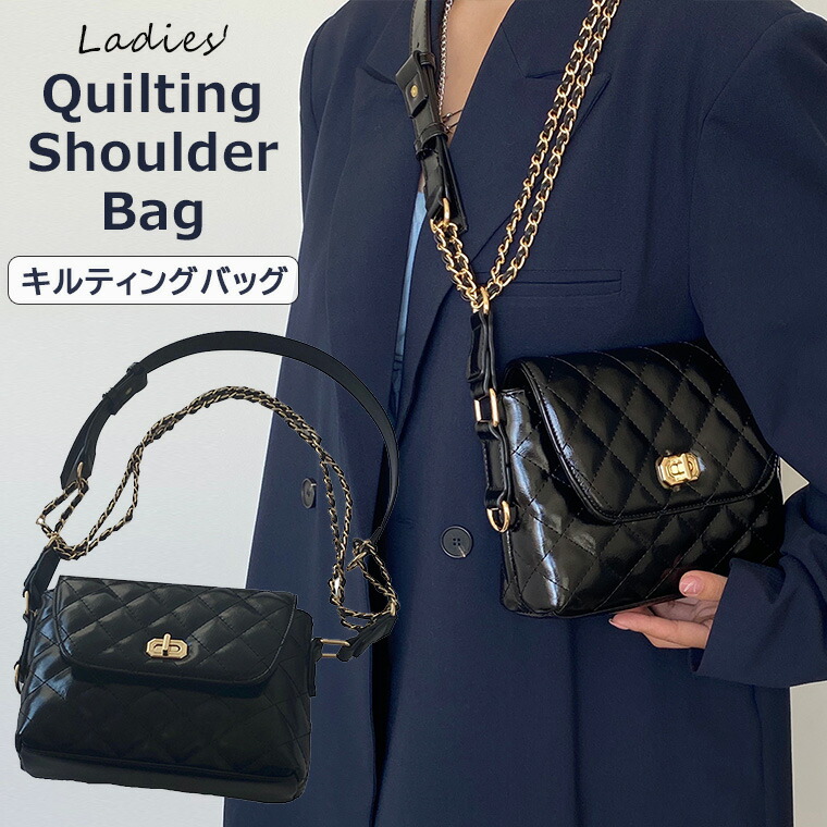 ボディにしっくり馴染むショルダーバッグ♪ キルティングバッグ ショルダー チェーンショルダー バッグ ショルダーバッグ レディース 斜め掛け 肩掛け 黒 ブラック