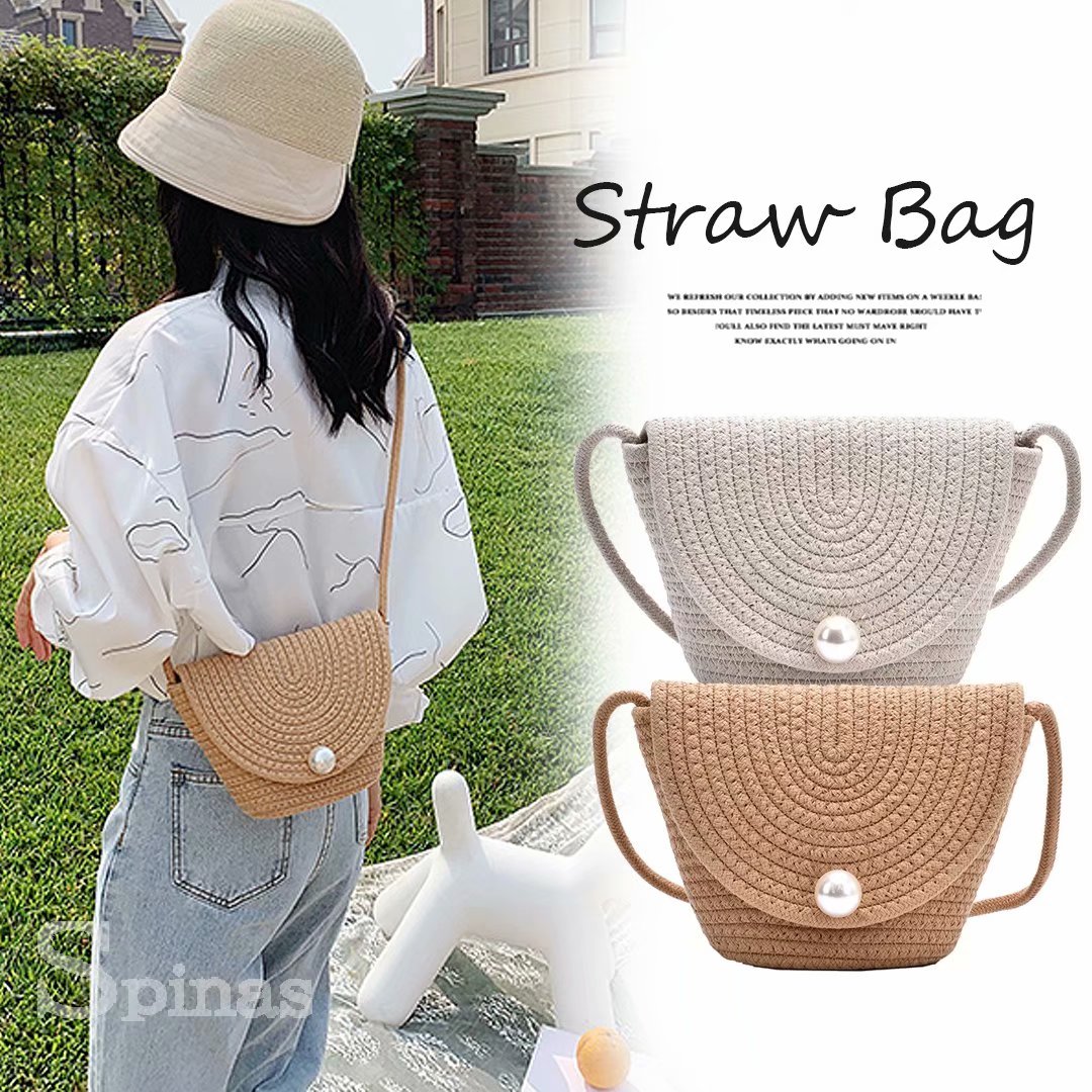 ワンポイントパール付き ストロー かごバッグ ショルダーバッグ ショルダー ミニバッグ 夏 オシャレ SNS映え