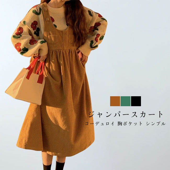 ジャンパースカート レディース サロペット コーデュロイ ノースリーブ 無地 ミモレ丈 ハイウエスト カジュアル ゆったり 体型カバー シンプル 重ね着 定番 通勤 お出かけ 秋冬