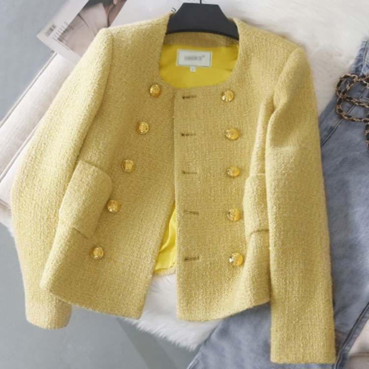 ツイードジャケット レディース 韓国ファッション アウター ジャケット 長袖 ノーカラー ツイード フェミニン オケージョン 結婚式 オフィス フレンチ 上品 秋 春