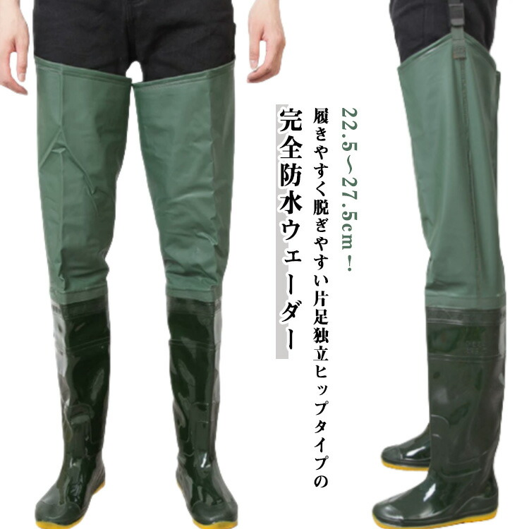 片足独立ヒップタイプで脱ぎ履きが簡単 ウェーダー ヒップブーツ ヒップウェーダー 釣り用スーツ 田植え用長靴 川 河川 浅瀬 水場 岩場 漁業 渓流 農作業