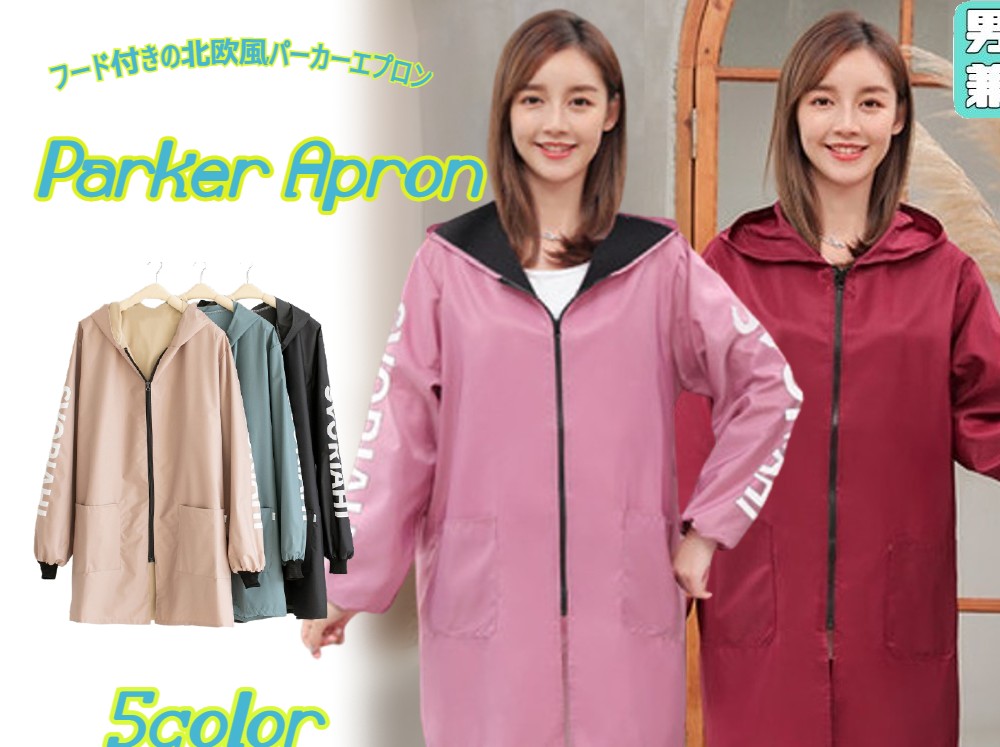 北欧風のおしゃれな パーカーエプロン フード付き 防寒 防水 防油 迷彩柄 男女兼用 ポケット ファスナー 長袖 室内 キャンプ