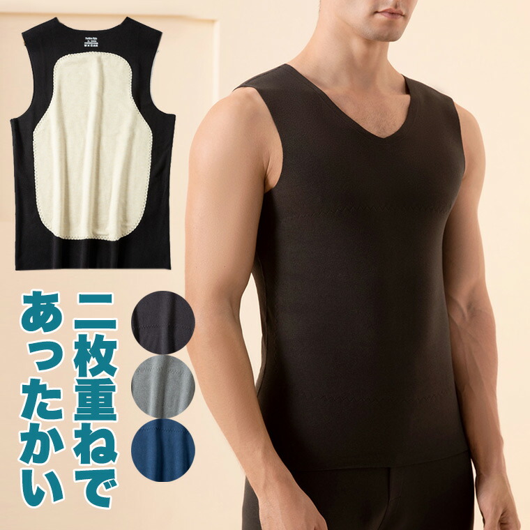 2枚組 背中が二重であったか 裏起毛 Vネック ノースリーブシャツ メンズ 秋冬 暖か暖か ベスト あったかインナー あったか 暖かい インナー 肌着 下着
