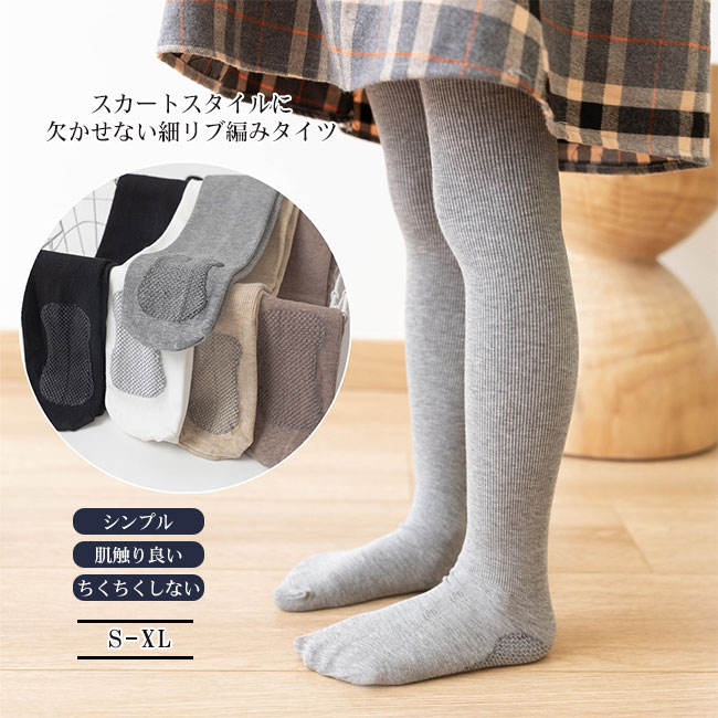 タイツ キッズ 子供服 こども服 女の子 リブ編み 綿素材 穿き心地良い 肌触り良い ちくちくしない 伸縮性 楽ちん フィット性 かわいい ロングシーズン 通園 通学 90-140 カラバリ豊富