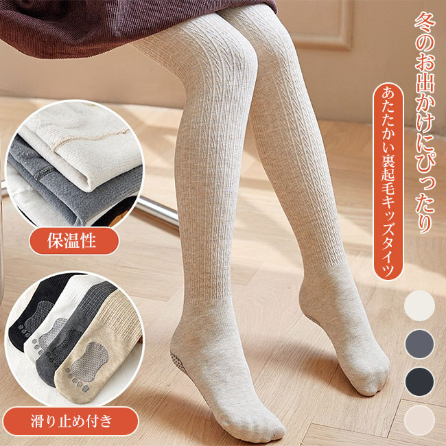 タイツ キッズ 女の子 ケーブルニット ケーブル編み 裏起毛 綿素材 暖かい 滑り止め 保温性 肌触り良い ちくちくしない 伸縮性 楽ちん フィット性 かわいい 秋冬 お遊戯会 通園 通学 入卒園 9