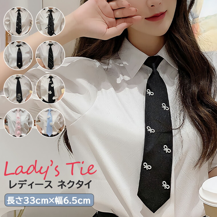 ネクタイ レディース スクールネクタイ ワンタッチ クイック ワンタッチネクタイ ガーリー デコネクタイ スクールタイ パール リボン ハート 制服 女子高生 高校生 学生 全8柄