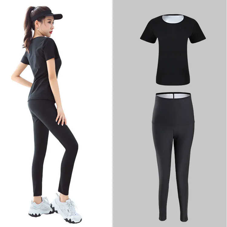 伸縮性抜群で動きやすい 着るだけでダイエット 半袖シャツ スパッツ 2点セットスポーツ アウトドア フィットネス トレーニング ウェア サウナスーツ