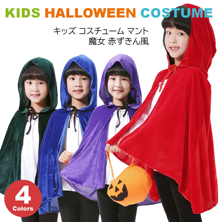 キッズ ハロウィン コスプレ マント ケープ 衣装 仮装 子供用 コスチューム カラーマント 魔女 赤ずきん風 全4種