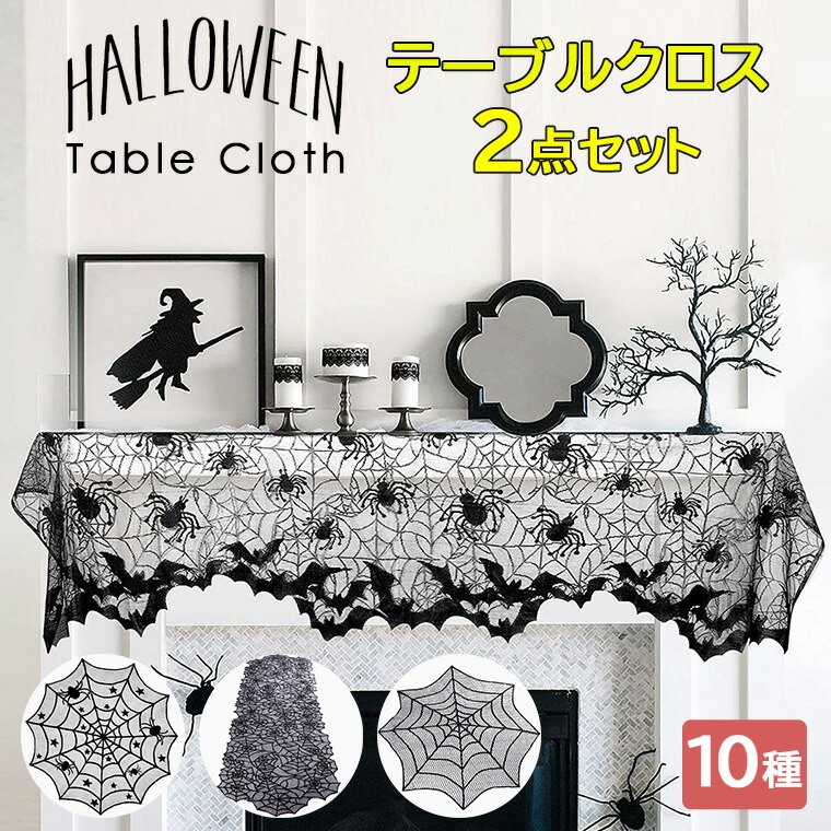 パーティー を楽しもう インテリアグッズ10種類 ♪2点セット ハロウィン インテリア 飾り テーブルクロス 壁飾り レース 蜘蛛 飾り付け デコレーション 部屋 ハロウィンパーティー 装飾 おしゃれ