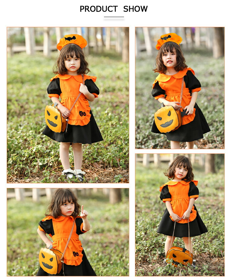 アリス風 パンプキン ハロウィン コスプレ キッズ コスチューム 女の子 ドレス 仮装 衣装セット 子供用