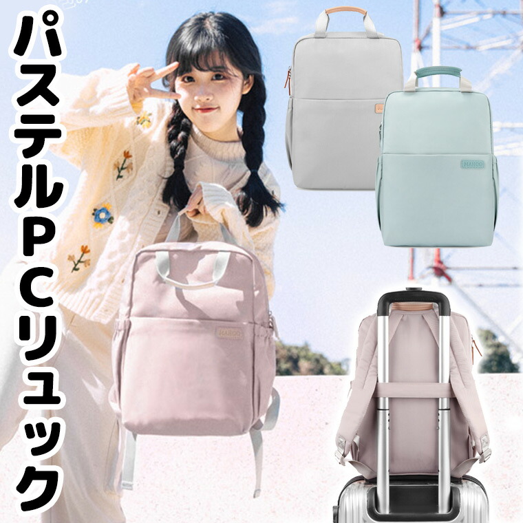 パステルカラーで可愛いPCリュック 中で留めるベルト付き 防水 ナップザック リュックサック バックパック メンズ レディース パステル ペールカラー キッズ パソコンケース iPadケース 保護ケー