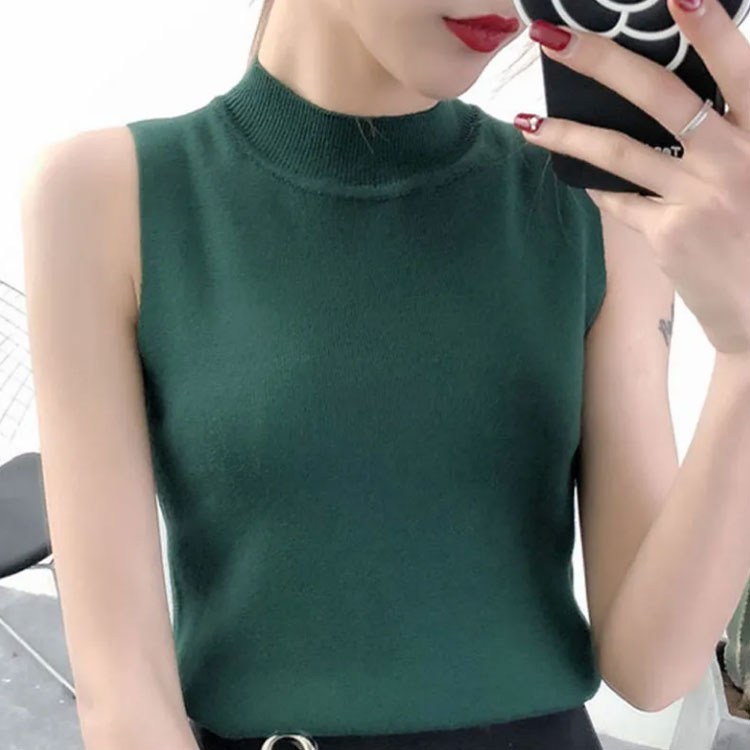 ニットタンクトップ レディース ノースリーブ ネック タンクトップ サマーニート トップス 着瘦せ インナー 薄手 ハイネック キャミソール セクシー