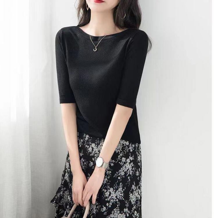 サマーニット レディース 半袖 ネック トップス シャツ 五分袖 薄手 おしゃれレディースファッション トップス シャツ カットソー