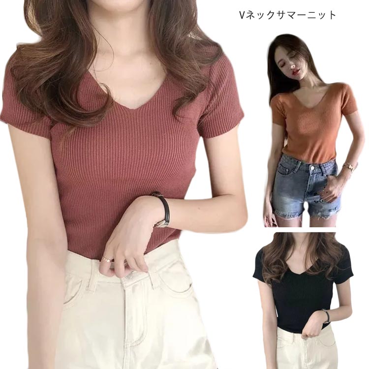 サマーニット Vネック レディース プルオーバー 半袖Tシャツレディースファッション トップス Tシャツ カットソー
